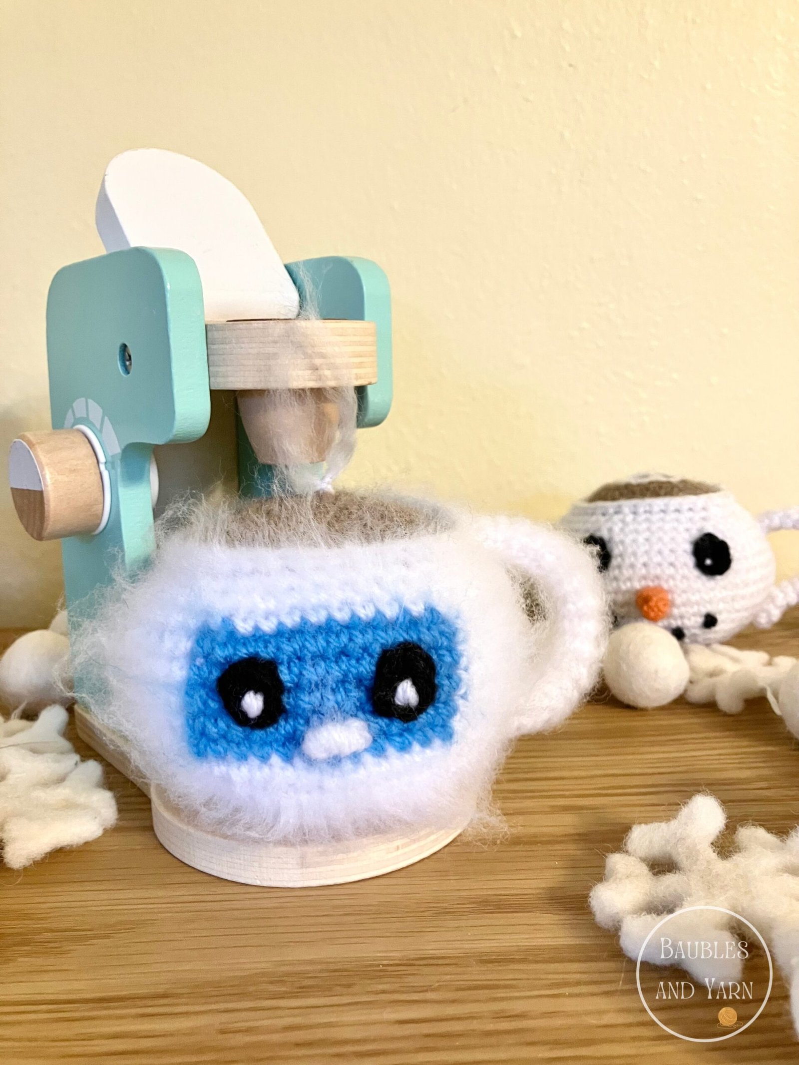 Crochet mugs have become one of my favourite projects to design, especially when they’re made for play kitchens and pretend play. This yeti mug crochet pattern is a fun and approachable pattern that adds texture and personality to any handmade play food collection, and it’s a perfect project for winter.
